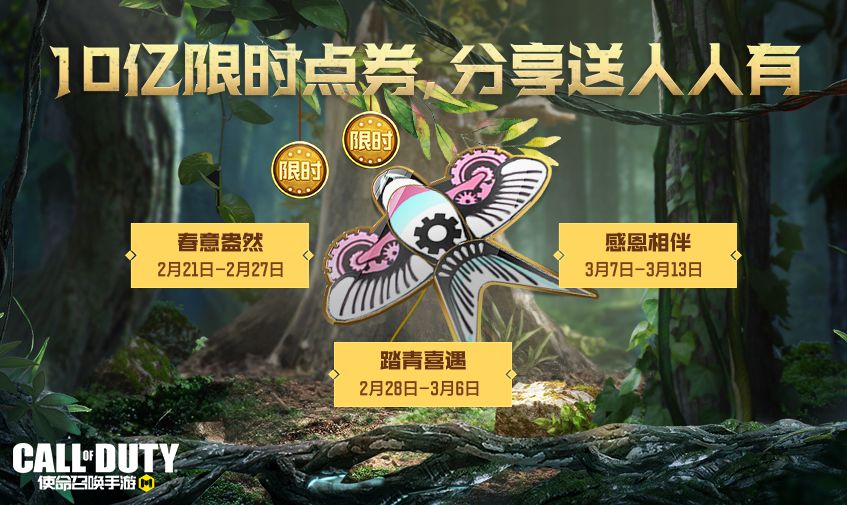 社交分享送点券第二期即将来袭!2月21日起,战士们参与社交分享活动并完成简单任务,即可领取一定数量的限时点券!10亿限时点券送不停,快来和好友一起分享快乐吧!