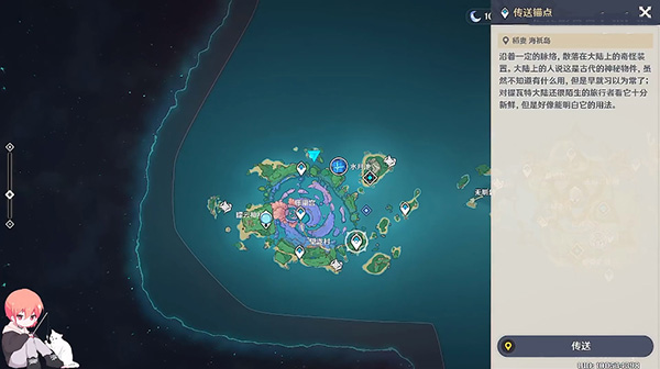 1、首先我们通过传送锚点来到海祇岛,也就是地图中下方的提示点;
