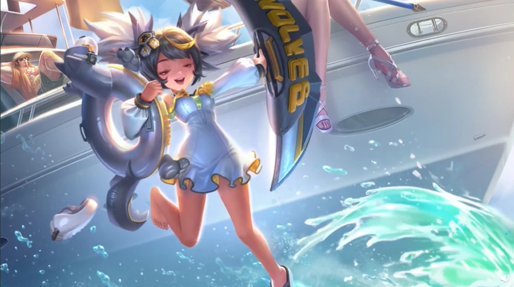 而局内的建模也是如此,扇子上是明显的狼队队标,同时双马尾的发型也变成了灰白色,乍一看还有点像狼耳朵。这次星元名字叫嗷呜小狼还挺可爱的,就是感觉和小乔本身活泼的样子不太搭。