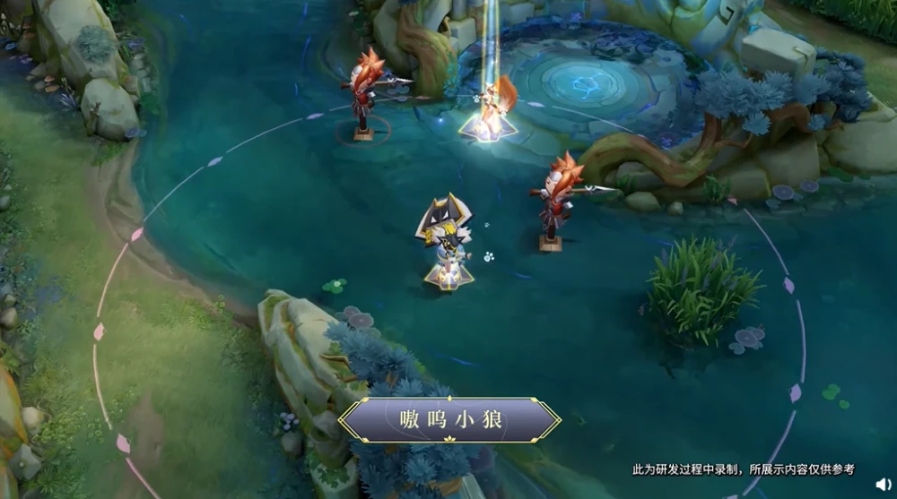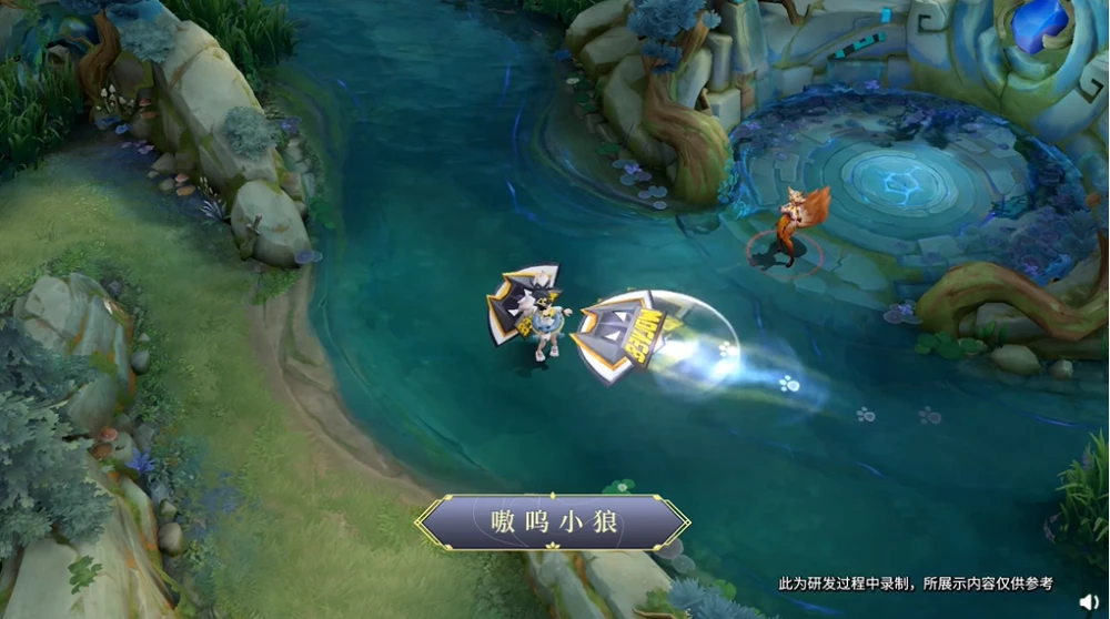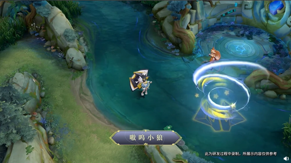 一技能丢出的扇子是狼队图标,同时还跟着狼爪子的拖尾,也挺可爱。二技能则是狼队队标出现在地上,同时还会出现可爱的小星星。