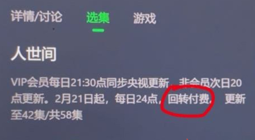 大家在爱奇艺中观看电视剧《人世间》时,可以看到显示2月21日起,每日24点,回转付费,如下图所示,很多朋友不清楚回转付费的意思,这个其实就是剧完结后,全部的集数锁定,只有VIP会员可以看。