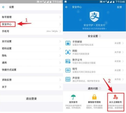 1. 依次打开「设置 - 安全中心 - 永久注销账号」,支付宝会说明账号注销后,用户会放弃有关的资产和权益;