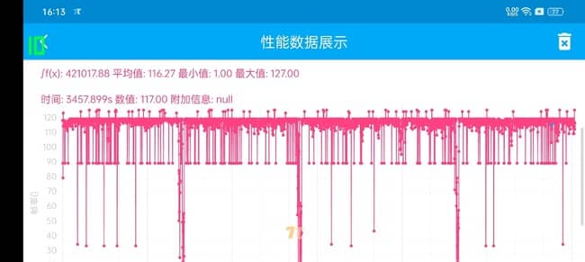 落实到具体游戏表示上,手机之家使用SoloPi软件对游戏帧率进行实时监测。通过平均帧率和帧率曲线可以看到,游戏过程中OPPO Find X5 Pro的平均帧率可以稳定在115帧以上,达到116.27帧,同时整体趋势为一条直线,看起来可以驾驭住《王者荣耀》120Hz极高帧率。