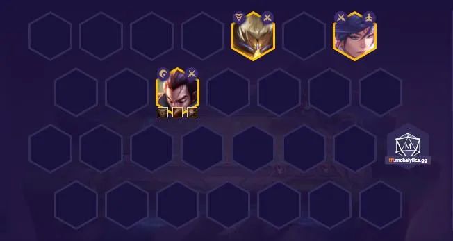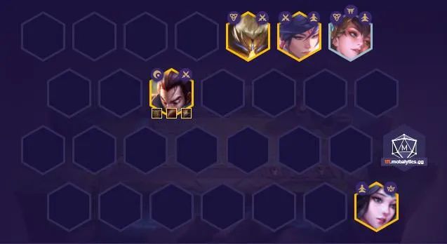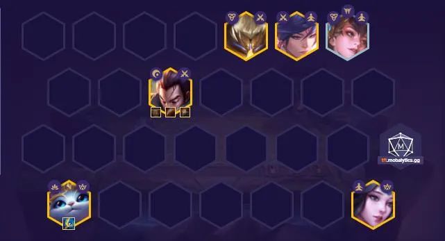 中期运营三阶段第一回合小搜一波,四级出一费概率高,如果这时候还没天选也可以考虑决斗剑姬天选,除了亚索的天选加成没有了整体阵容并没有太大变化。