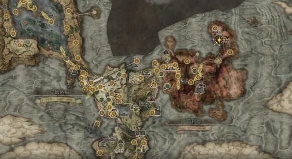 在游戏中先打开地图,找到下面非凡软件站小编地图中的这个位置,也就是龙墓赐福点这里,在地图中可以看到金粪甲虫,接着玩家就要控制自己的角色击败金粪甲虫,打败了它之后就可以得到失色锻造石9。