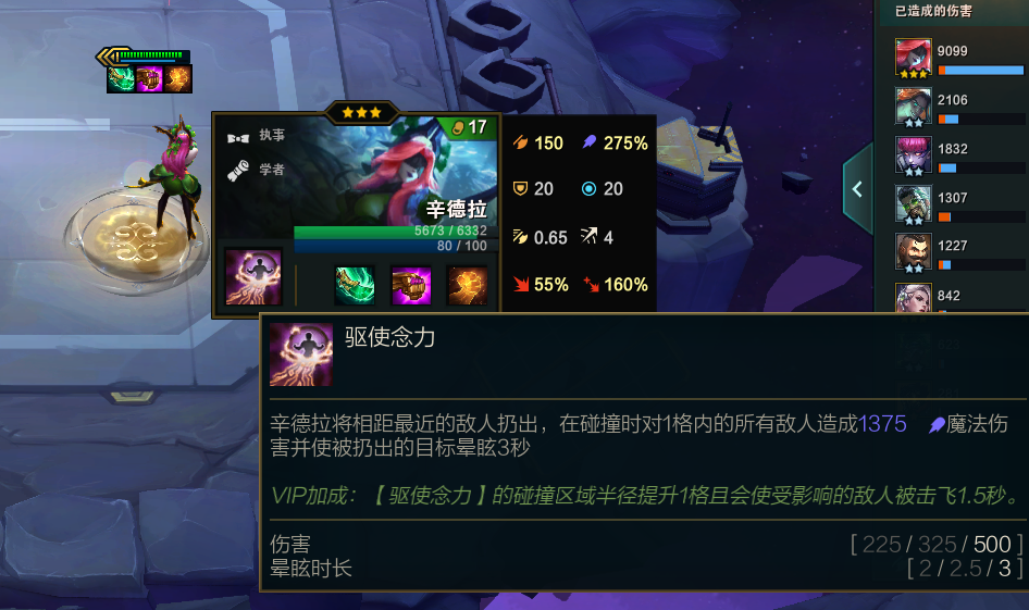 开局有终身进修玩这套基本保底有分,前期打法以花钱连胜为主,后期法强轻松叠到二百七八左右,再加上装备的加持一个大就能直接秒杀对手后排。另外三星辛德拉技能还具有3秒的眩晕,这也意味着控制很充足并且也不怕刺客突脸,如果是VIP辛德拉每个大招都能附带1.5秒的AOE团控,很多时候对手C位可能还没启动就已去世。再提醒大家一下就算对手出了水银辛德拉虽然不能抓取打出控制,但同样能造成伤害哦!