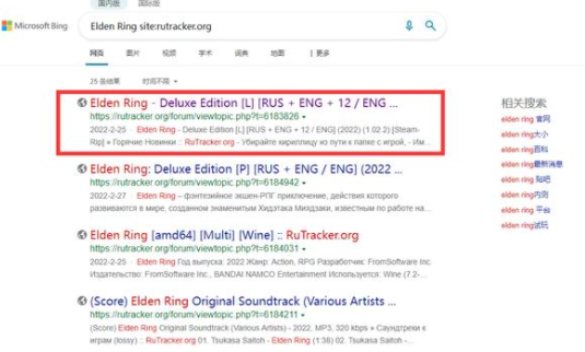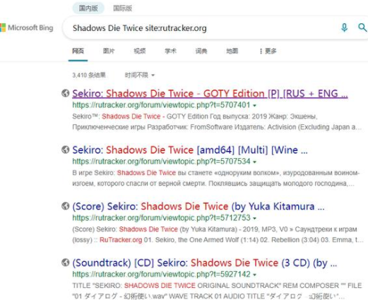 再比如,搜索只狼的游戏资源,只需在必应搜索里输入【Shadows Die Twice site:rutracker.org】。