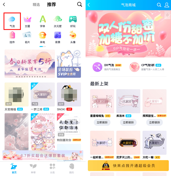 2、点击【气泡】,选择喜欢的气泡样式装扮即可。