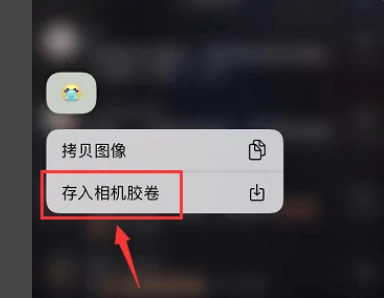 2、长按输入栏里的表情包会弹出选项提示,点击 存入相机胶卷,如下图。