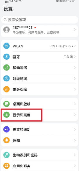 1、打开荣耀手机设置功能,在功能中找到【显示和亮度】打开;