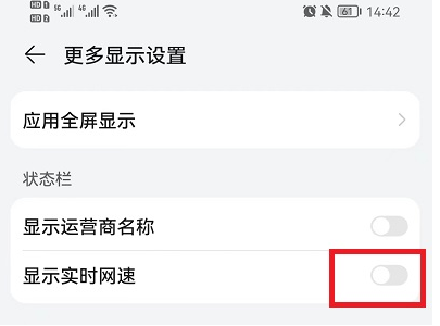 3、在更多显示设置中,就可以看到一个【显示实时网速】的功能,点击打开其按钮,就可以完成设置。