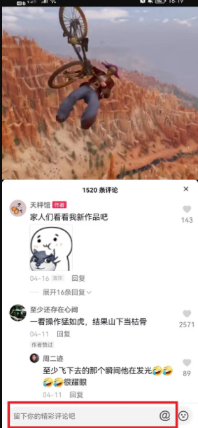 1、在抖音视频中的打开评论区,因为想要艾特只有通过作品的评论区;