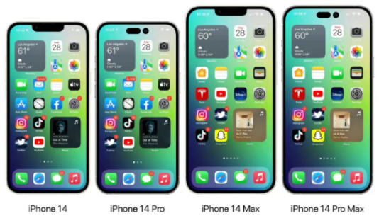 iPhone 14 Max:6.7英寸屏幕,60Hz刷新率,刘海,A15处理器,6GB RAM,1200W主摄;