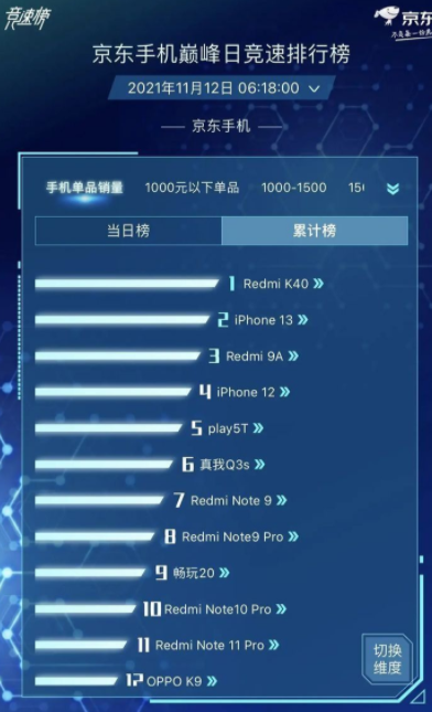 iPhone 13在iphone 13系列中性价比超高,就拿去年京东双十一期间,苹果手机销量来讲,iphone13销量累计仅次于红米k40,也就是高端手机很多人都选择了iphone13,可见这款机型非常受欢迎,不仅是这次加量不加价,存储翻倍,而且功耗更低,续航直接可以一天两充了,这款机型成为很多人的首选,性价比确实不错。