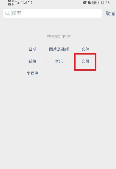 4、然后在出现的搜索指定内容的下方选择【交易】就可以找到所有的金额交易记录。
