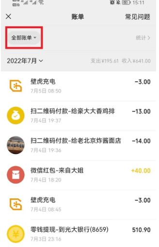 5、在账单界面点击左上角的【全部账单】展开其中的转账界面;