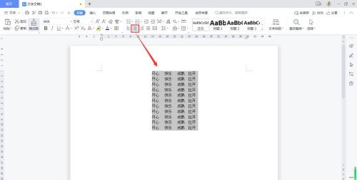 第四步:全选所有文字,居中对齐文字(如图所示)。