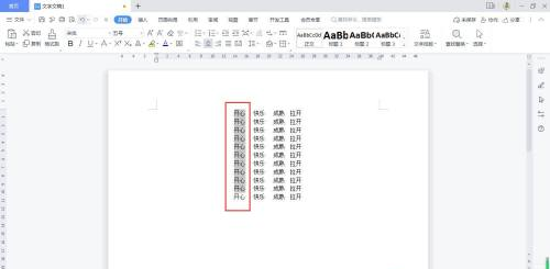 第五步:先按着ALT键,用鼠标拖动竖排文字(如图所示)。