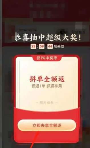 1、拼多多的下单全额返还活动是系统随机开放的,只有参与其中的用户才能够享受这个福利。