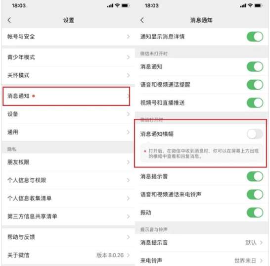 开启方法:打开微信,点击“我” -“设置” -“消息通知”将新增的“消息通知横幅”后面的开关打开即可。