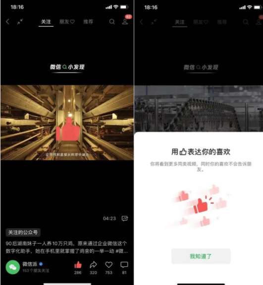 当我们给视频号点赞的时候,会在视频界面出现红色的点赞动画效果,点赞之后你将看到更多同类视频,同时你喜欢的不会高速朋友。