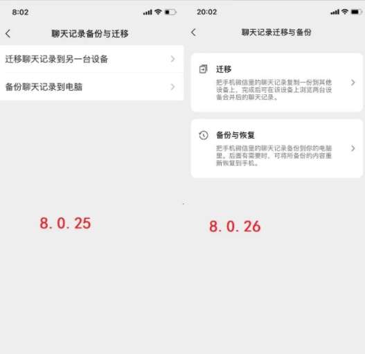 在微信的“设置”-“通用”-“聊天记录迁移与备份”页面,对里面的两项功能进行了调整,主要是文字介绍和风格,原本的功能并没有改变。