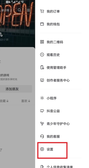 2、在弹出的界面中点击其中的【设置】,进入到设置功能;