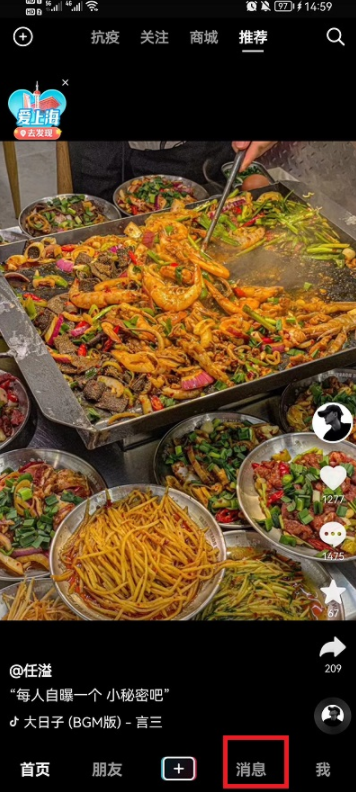1、在抖音界面中,点击下方的【消息】进入到该功能界面;