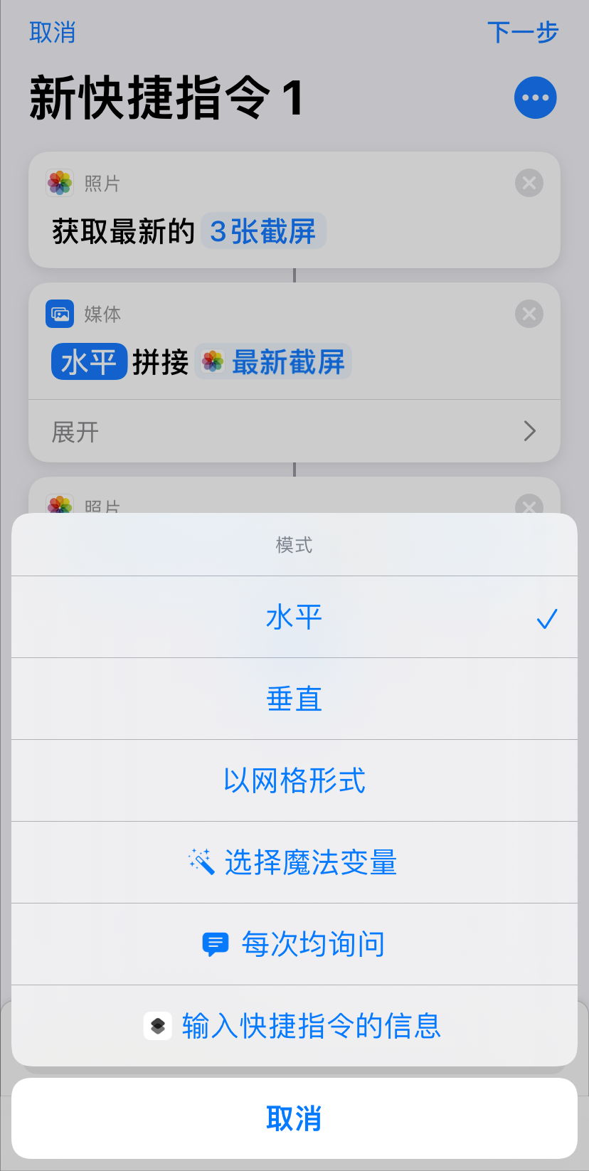 到这里,截长图的快捷指令就全部完成了,那么怎么使用呢?