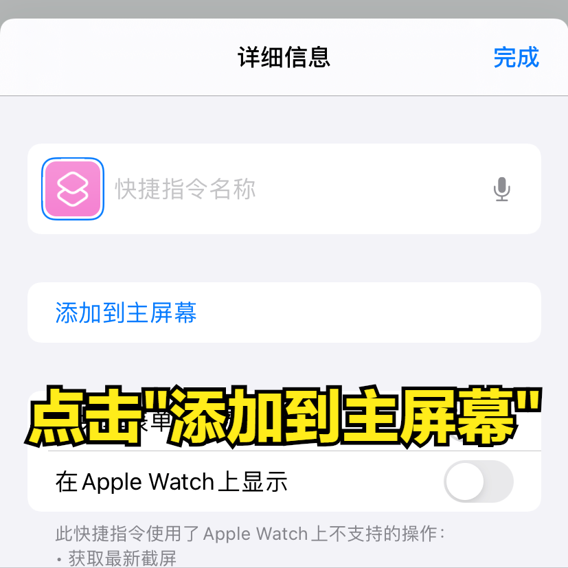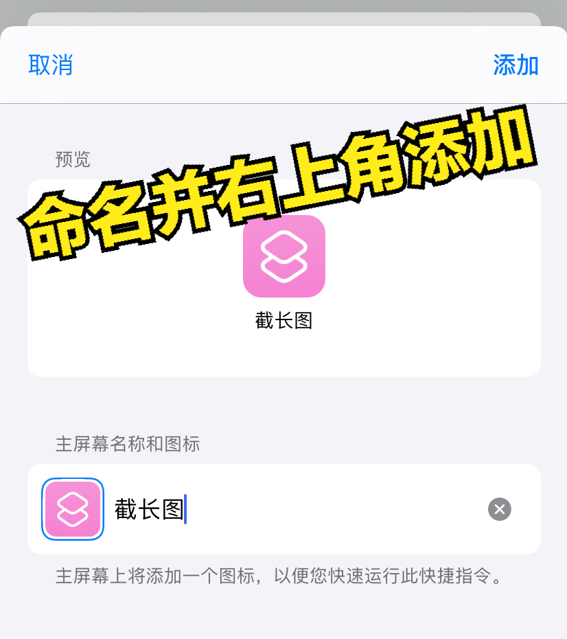 完成上面的调整动作后,最后一步,点击右上角的...按钮,在弹出来的页面上点击添加到主屏幕,这时你可以自定义名称和图片,方便使用时辨认。