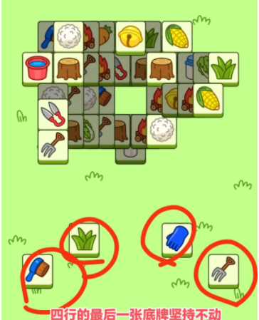 先消下面这四行的牌,一直消到只剩最后一张!