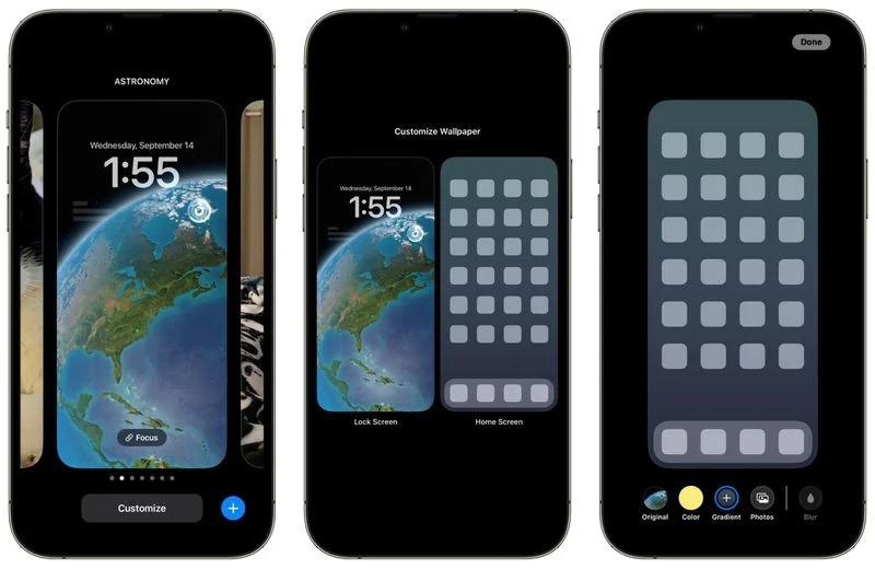 iOS 16 的一大特色是能够自定义您的锁屏界面,而在 iOS 16.1 中,苹果为此进行了一些优化,以明确如何自定义锁屏壁纸与主屏幕壁纸。当您长按锁屏并选择“自定义”时就可以看到有两个清晰的选项:一个用于自定义锁屏壁纸,另一个用于自定义主屏幕壁纸。