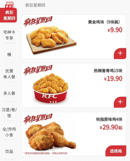 肯德基疯狂星期四有哪些东西?又到了星期四,这是我们最期待的疯狂星期四。上周,热脆鸡、鸡块和鸡米花非常受欢迎接下来去秀小编就给大家带来了KFC疯狂星期四9.15菜单一览,希望能帮助到大家,一起来看看吧。