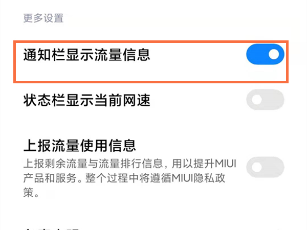 3、开启通知栏显示流量信息功能即可。