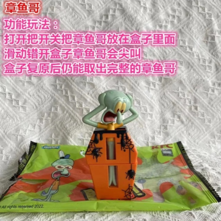 打开把开关把章鱼哥放在盒子里面,滑动错开盒子章鱼哥会尖叫,盒子复原后仍能取出完整的章鱼哥。