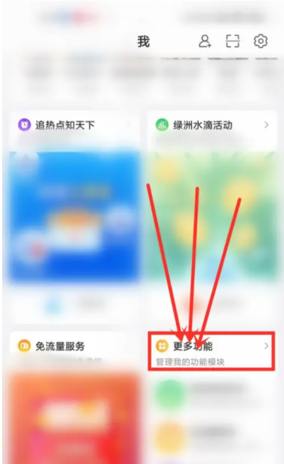 进入“我”界面,下拉找到“更多功能”卡片,点击进入。
