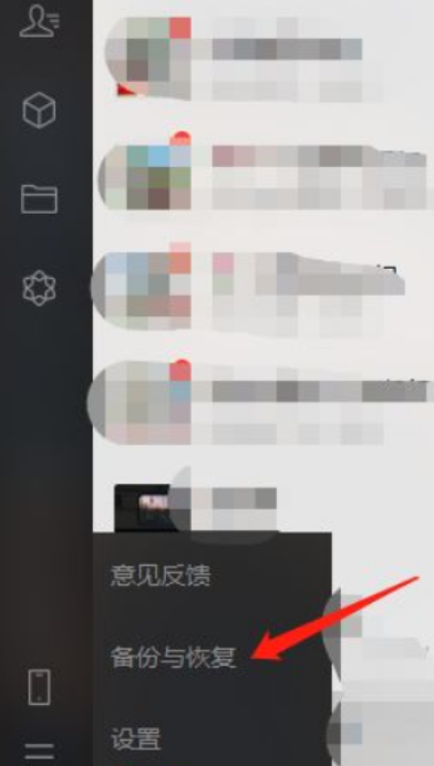 4、打开电脑端微信后,点击左下角更多中的备份与恢复选项,