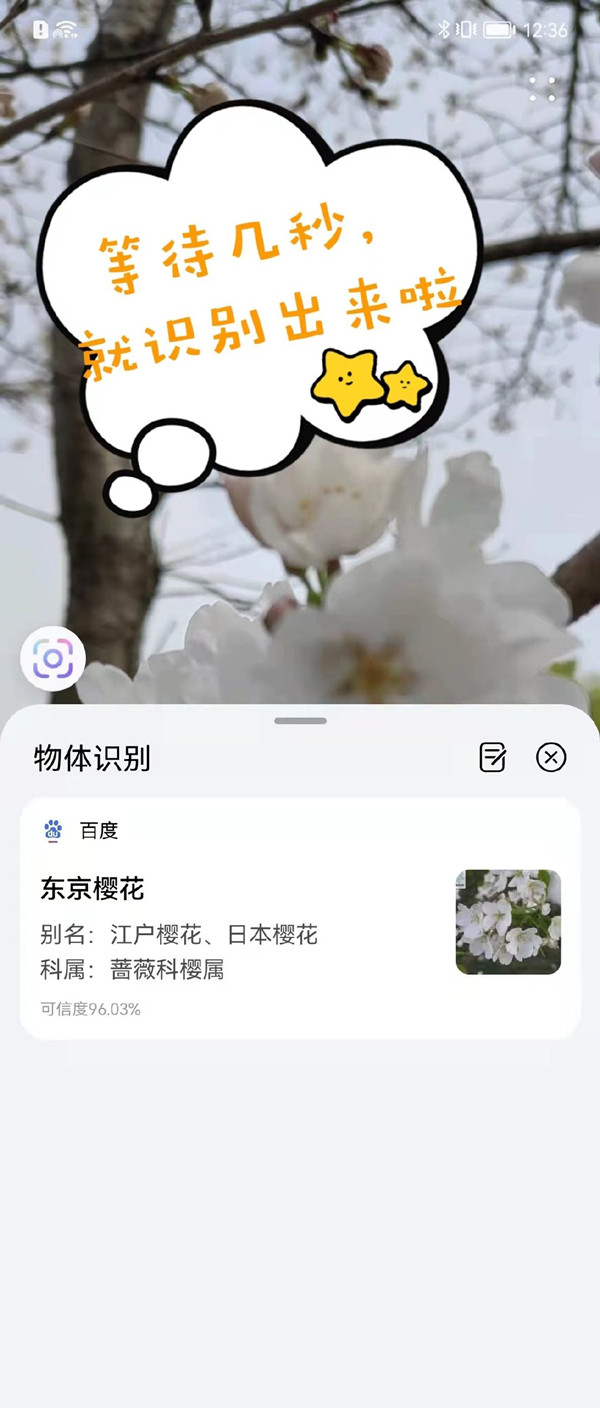 2、切换至【识物】,将手机对准识别的物体即可得到识别结果。