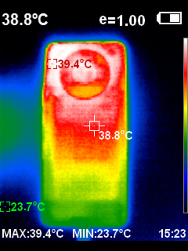 当然更重点的更是荣耀X40 GT在经过半个小时的《原神》高画质游戏后,能否控制好发热?经过小编实际测试,最高温度出现在背部左侧,仅为39.4℃,如此高负载的情况下没有超过40℃,拿在手上只是略有温度,这样的温控表现相信能够让广大玩家放心。
