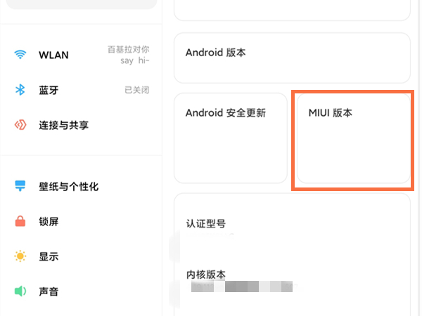 2、找到MIUI版本号,连续点击七次版本号即可进入开发者模式。