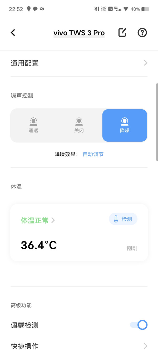 vivotws3pro有体温检测。体温监测功能在佩戴几分钟后就有检测结果,后续如果一直戴着耳机会一直监测体温。