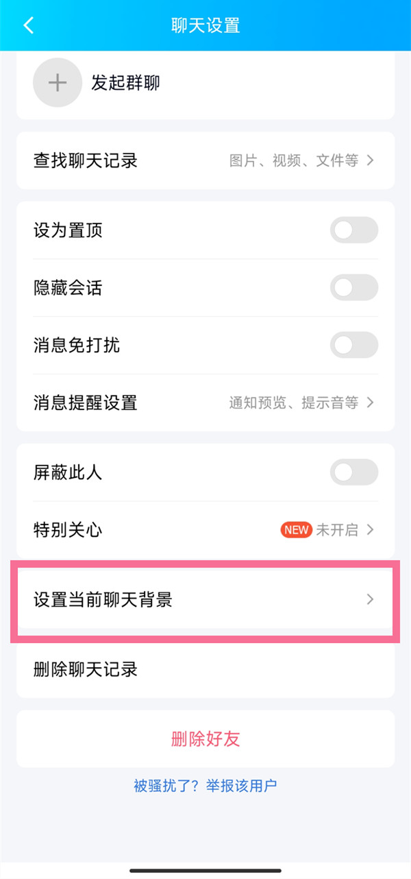 2、点击【设置当前聊天背景】。