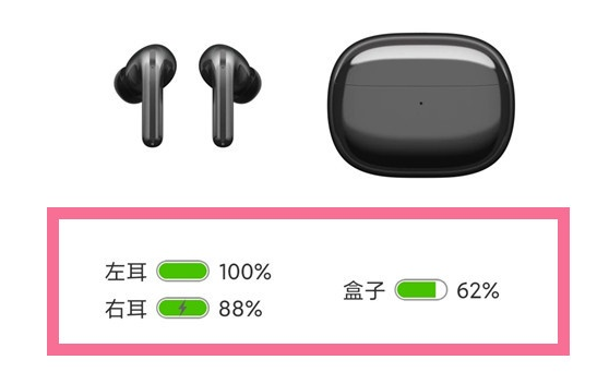 3、最后窗口上面会显示左右耳机以及充电仓的电量。