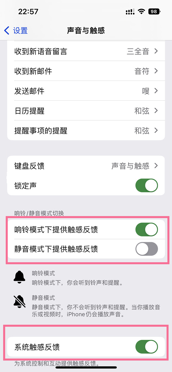2、选择需要开启的振动模式,将其右侧的开关开启即可。