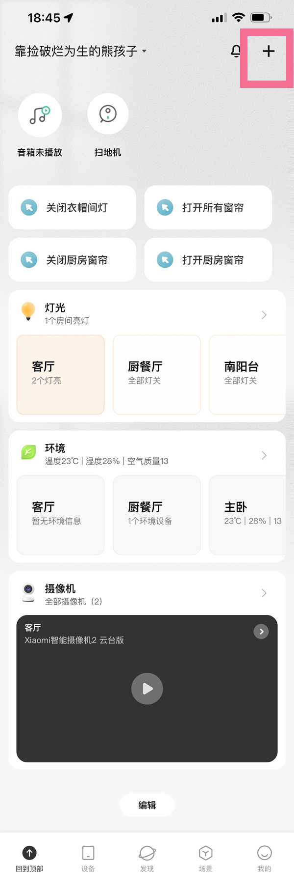 2、进入米家APP,点击右上角“+”,手机会自动扫描附近设备,点击【开始连接】。