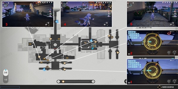 1、我们按照标记好的路线寻找到宝箱的位置,在这里我们可以找到宝箱1-5。