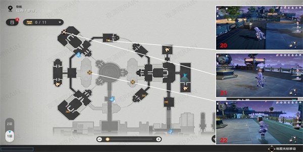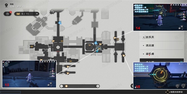 6、我们按照图下标记好的路线来寻找宝箱,在这里我们可以寻找到宝箱16-19。