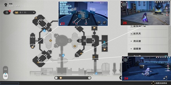 8、我们继续按照图下标记好的路线来寻找宝箱的位置,可以寻找到22-25的宝箱位置宝箱。